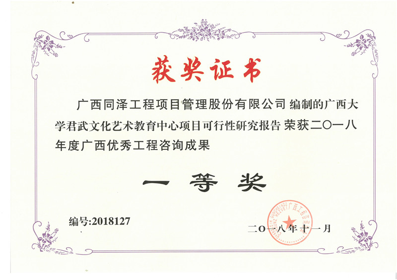 廣西大學(xué)君武文化藝術(shù)教育中心項目可行性研究報告榮獲2018年度廣西優(yōu)秀工程咨詢(xún)成果一等獎