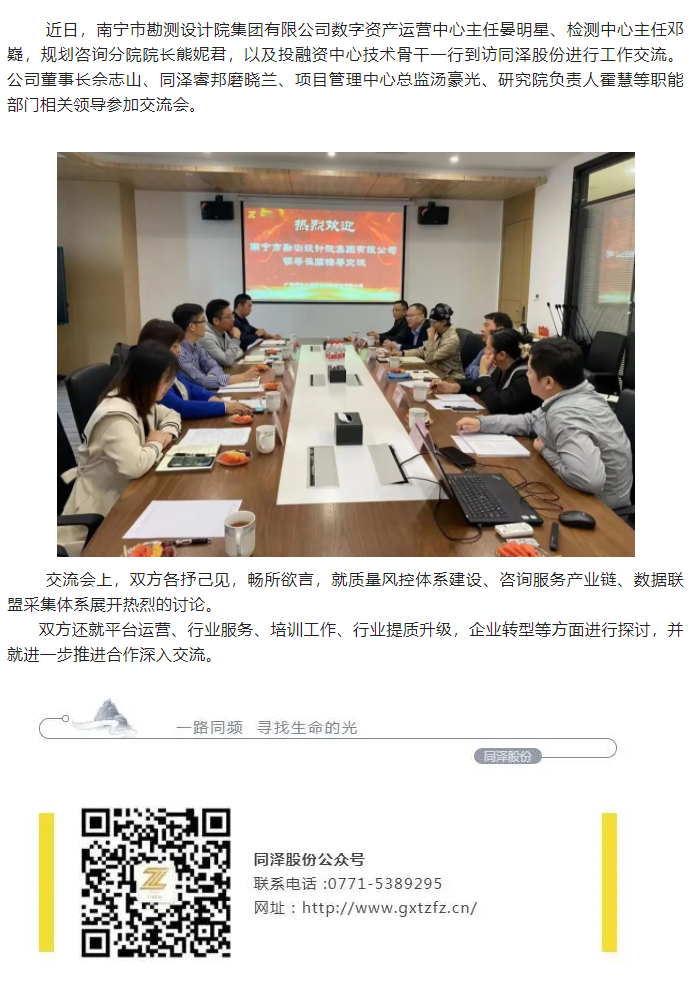 合作交流 | 南寧市勘測設計院集團有限公司到訪(fǎng)同澤股份交流