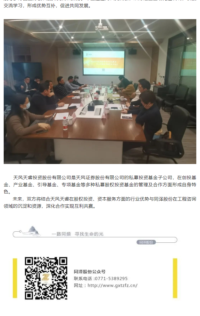 合作交流 | 天風(fēng)天睿投資股份有限公司到訪(fǎng)同澤股份座談交流
