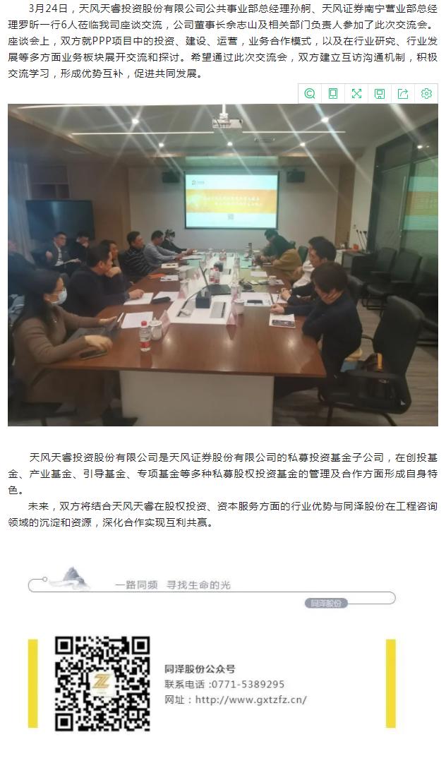 合作交流 | 天風(fēng)天睿投資股份有限公司到訪(fǎng)同澤股份座談交流