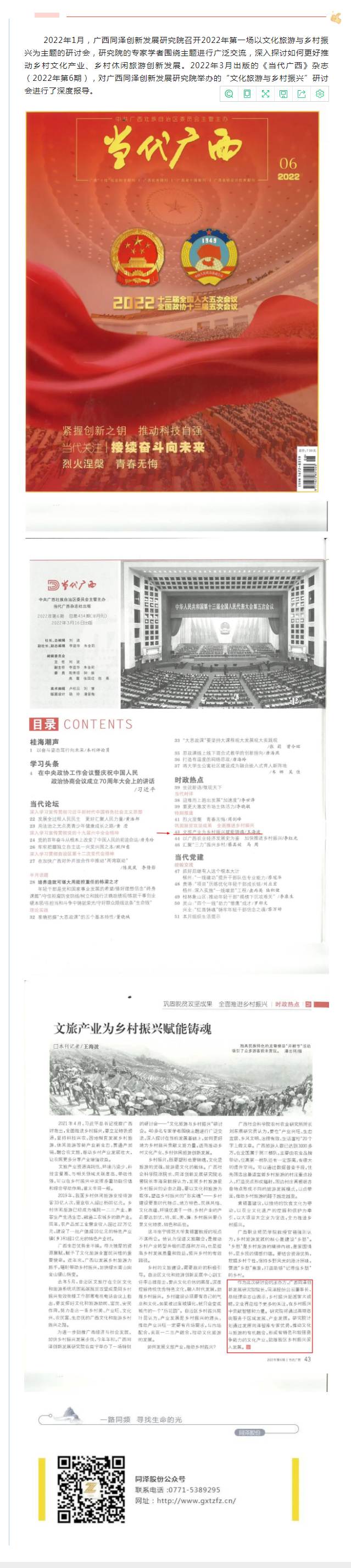 同澤研究院“文化旅游與鄉村振興”研討會(huì )獲《當代廣西》雜志報導